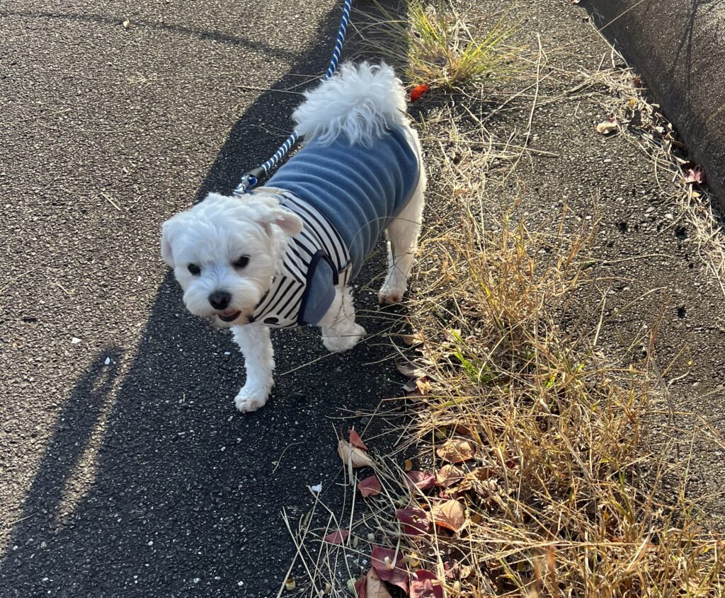 麦はリードを持つ私をチラチラ見上げながら、軽快なステップ。
